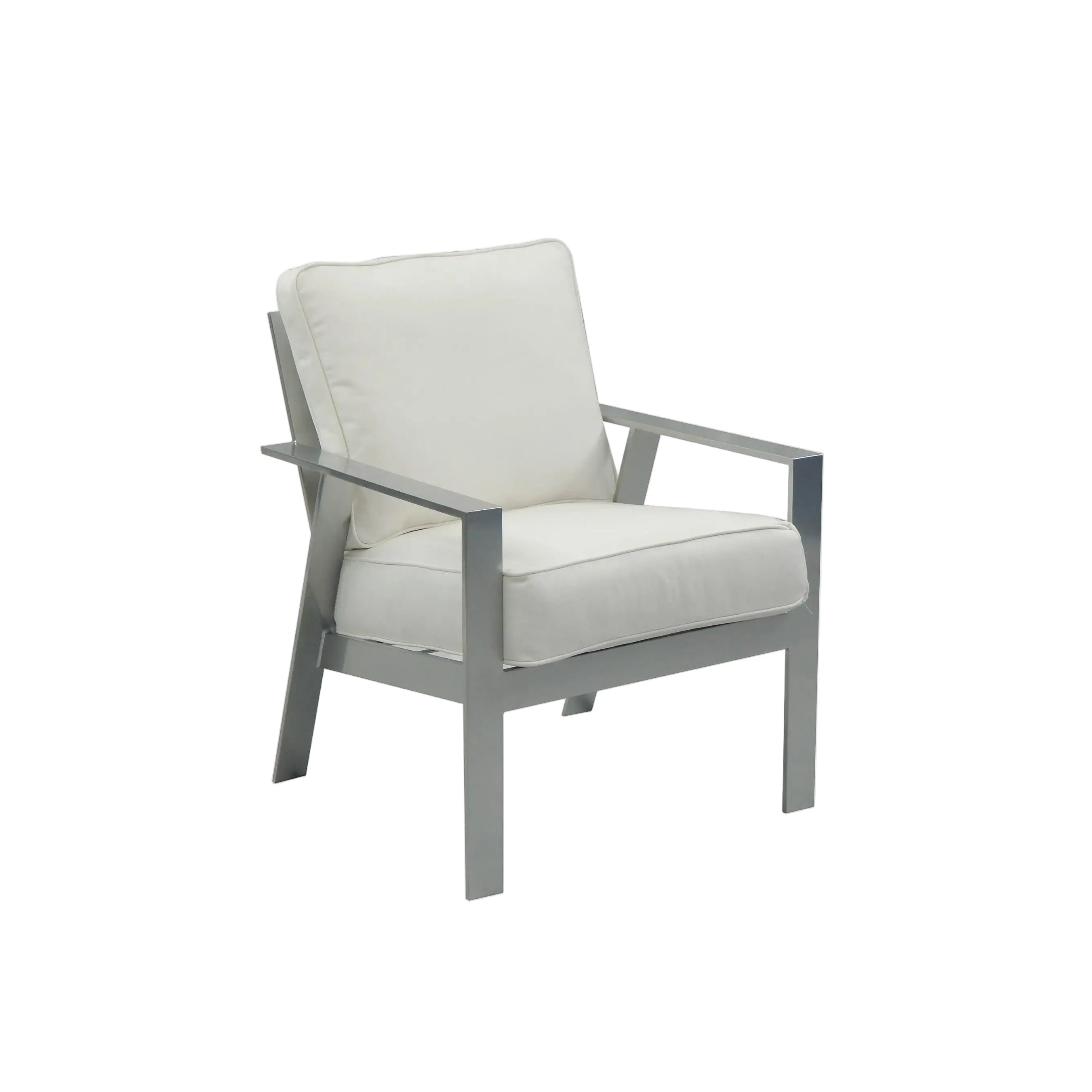 The Trento Cushioned Dining Arm Chair delivers modern elegance and ergonomic support with its clean-lined frame and generously cushioned seat. Crafted from rustproof cast aluminum and built with high-resilience foam cushions, this chair is ideal for upscale outdoor dining areas. Its weather-resistant finish and timeless silhouette make it a versatile choice for both residential patios and commercial spaces.