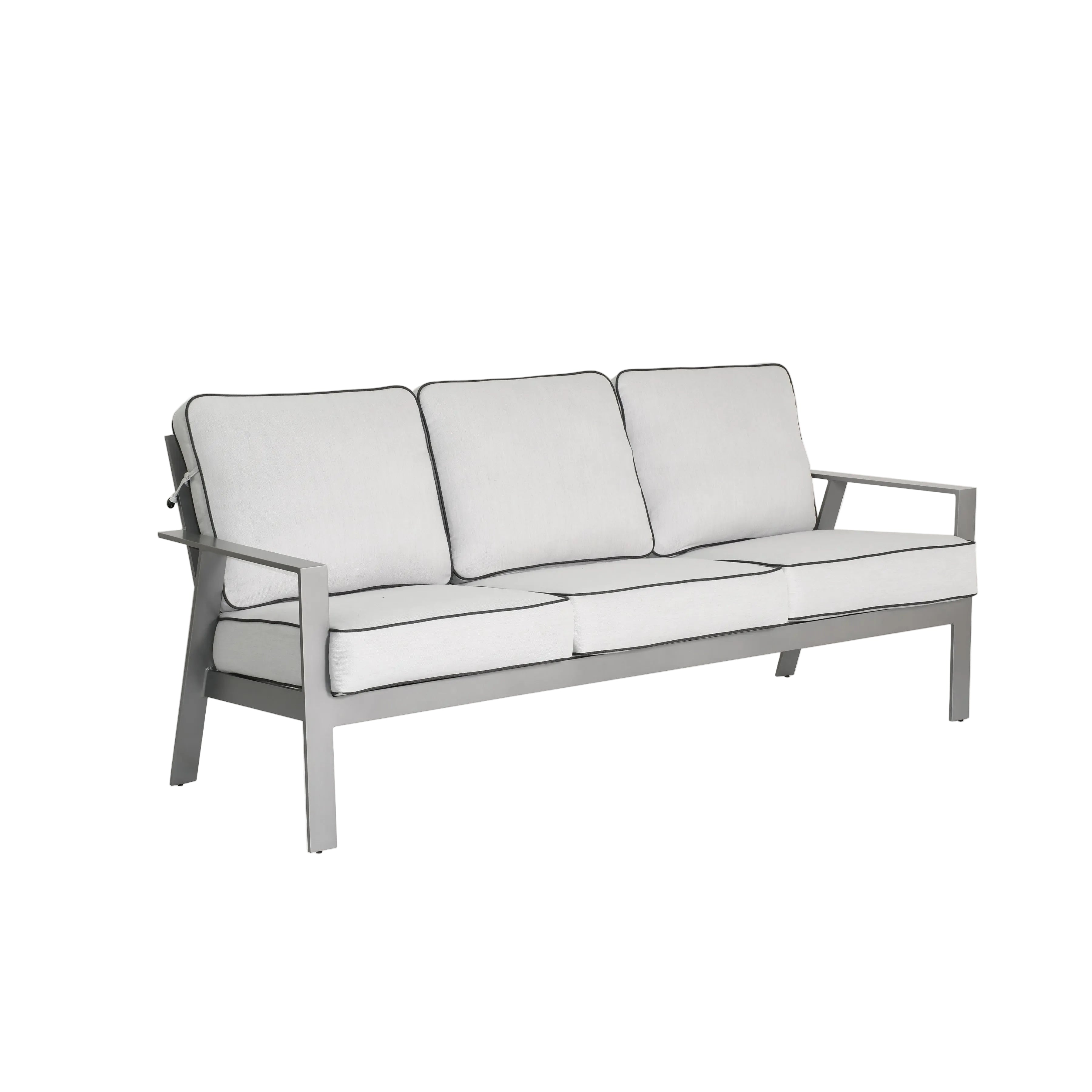 The Trento Cushioned Sofa is the epitome of contemporary outdoor luxury, offering wide seating for three with deep, weather-resistant cushions. Its cast aluminum frame is engineered for strength and corrosion resistance, while the clean, geometric lines reflect modern design sensibilities. Ideal for outdoor lounges, patios, and poolside spaces, this sofa adds sophistication and lasting comfort to any setting.
