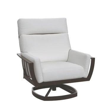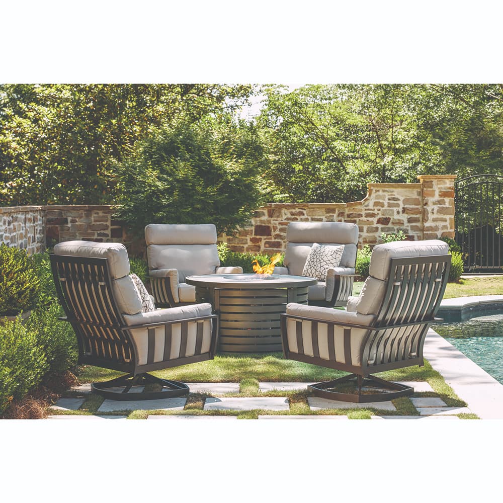 The Lane Venture Luxe Swivel Rocker delivers refined comfort and long-lasting durability for any outdoor setting. The weather-resistant, powder-coated aluminum frame and cast-aluminum contoured slat back ensure it will handle sun, rain, and seasonal wear without fading or rusting. A two-piece back cushion supports both your lumbar region and head, while the cushioned seat adds plush comfort perfect for reading, relaxing, or lingering outside. The smooth swivel base and generous seat proportions give it a relaxed, inviting vibe without sacrificing sturdiness.