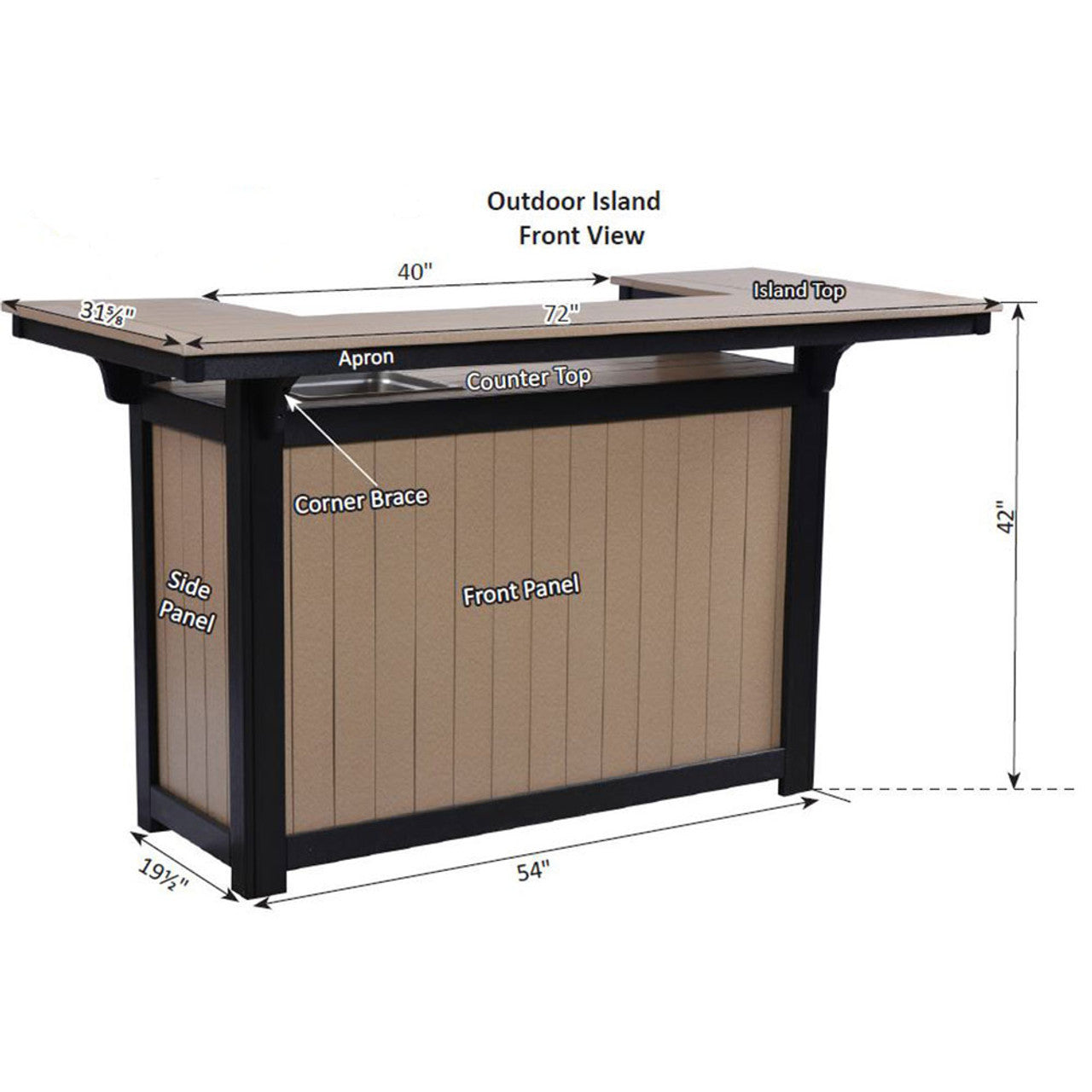 The Berlin Gardens Outdoor Island with Ice Bowl is a premium rectangular bar island designed for outdoor entertaining. Its built‑in ice bowl adds practical flair, letting you serve chilled drinks at the perfect temperature. Crafted from eco‑friendly, UV‑stabilized HDPE poly lumber (95% recycled plastic) with stainless‑steel hardware, it stands up to sun, salt spray, and snow without cracking or fading. Thoughtfully built in the USA, this piece combines sleek design, generous serving space, and low-maintenance durability, backed by a 20‑year residential warranty.