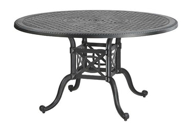 Enjoy ample outdoor dining space with the Gensun Grand Terrace 48" Round Dining Table. Crafted from high-quality cast aluminum, it resists rust and corrosion while featuring an ornate tabletop for added elegance. Part of the sophisticated Grand Terrace collection, it pairs beautifully with Gensun seating collections for lasting style and comfort.